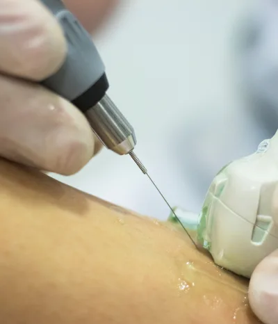 Otro de los tratamientos que empleamos es la EPI o Electrólisis Percutánea Intratisular para tratamiento de tendones o estructuras que lo requieran, también conocida como EPTE.